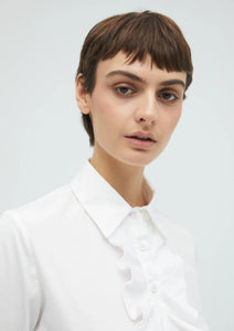 Camisa con detalle de volantes, confeccionada en algodón natural de alta calidad. El blanco aporta frescura y delicadeza.