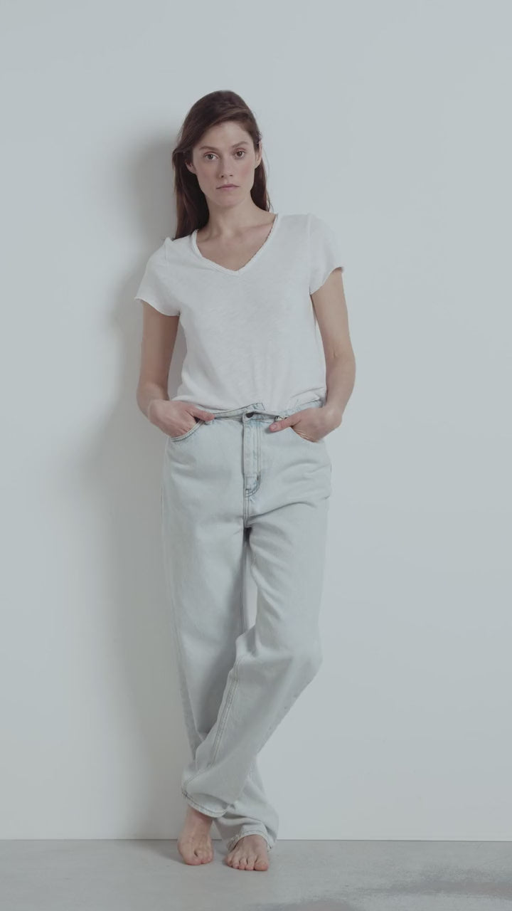 La camiseta con cuello en V para mujer Sonoma, icónica de las líneas American Vintage, es una prenda básica confeccionada en algodón flameado grueso y texturizado, con interior cepillado para una máxima comodidad. Disponible en una amplia gama de colores, se adapta a todas las ocasiones y se puede llevar fácilmente en cualquier estación gracias a su cuello femenino y su corte atemporal.